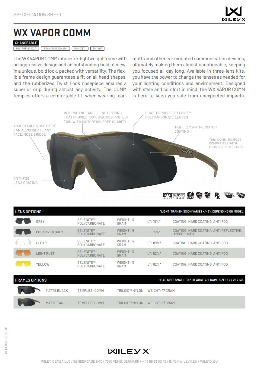 • Тактические очки WX VAPOR COMM с тремя сменными линзами: