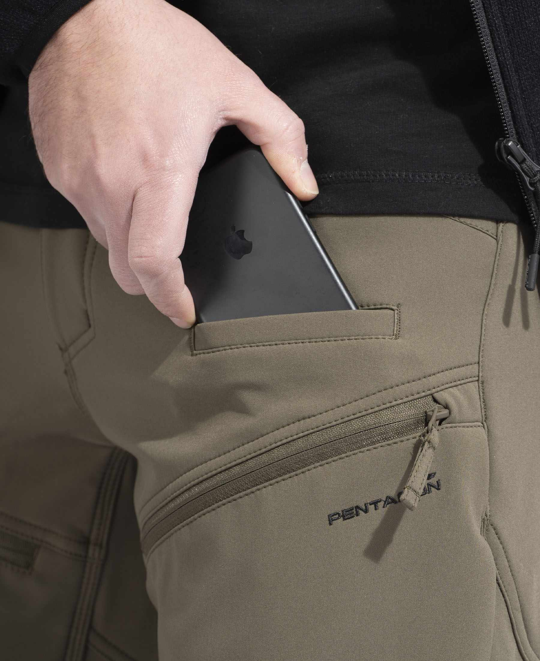 • Два врезных передних кармана с усилением под клипсу складного ножа.